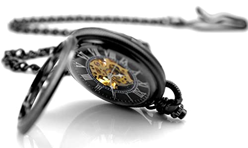 Unendlich U Vintage Retro Handaufzug Mechanische Taschenuhr 6 Blütenblätter Hohle Skelett Kettenuhr Pullover Halskette Schwarz