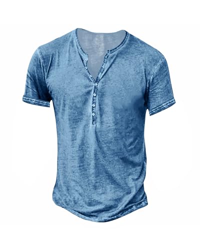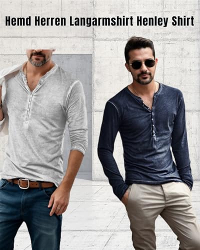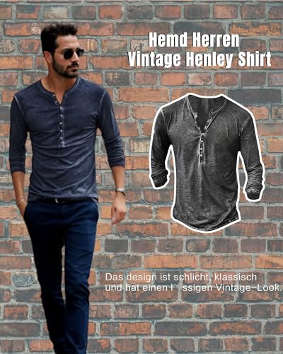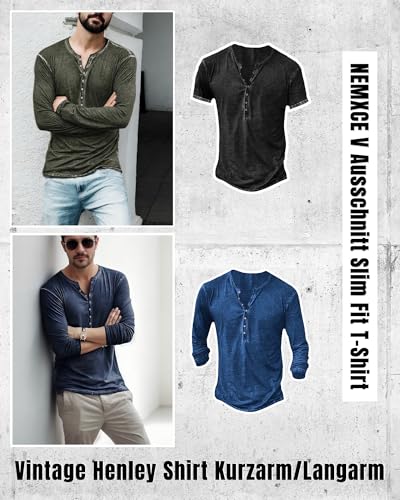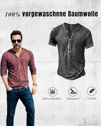 Hemd Herren Vintage Henley Shirt Kurzarm/Langarm T Shirt V Ausschnitt Slim Fit T-Shirt