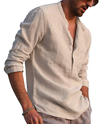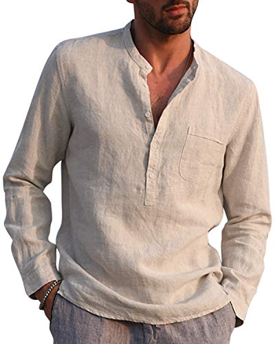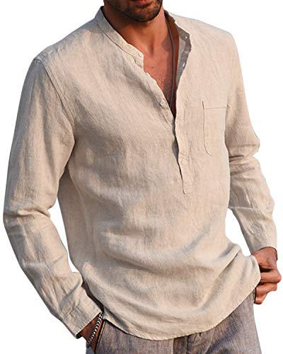 Herren Baumwolle Leinenhemd Herbst Winter Herren Hemd Langarm Regular Fit Freizeithemd Shirts