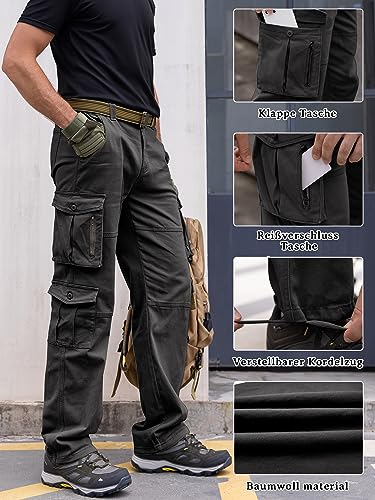 Herren Cargohose Baumwolle Baggy Chino Hosen Freizeit Outdoorhose Arbeitshose Trouser Pants
