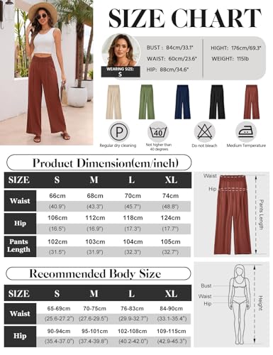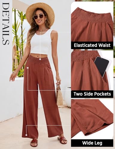 Leinenhose Damen Sommer Hose Weites Bein Baumwolle Leinen Sommerhose Lang Elastisch Hohe Taille Freizeithose Strandhose Leichte Loose Boho Hosen mit Taschen Bequeme Stoffhose