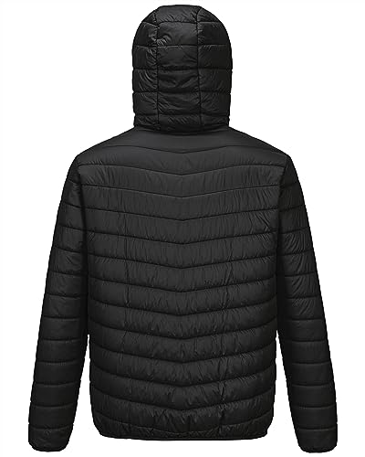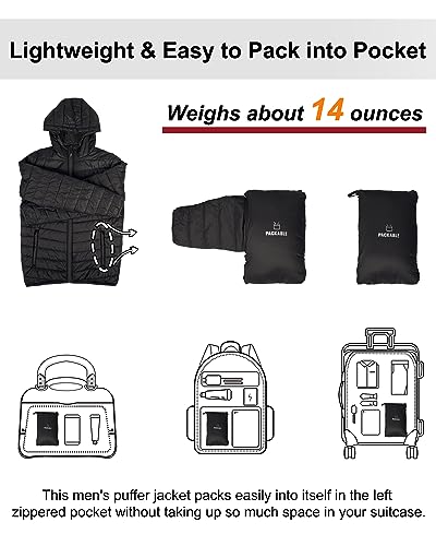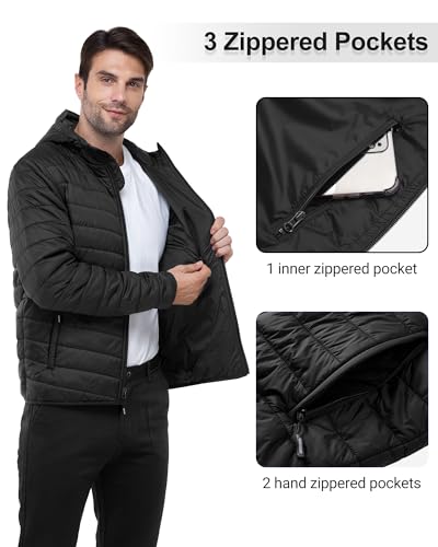 Herren Steppjacke Wasserdichte Pufferjacke Verstaubare Leichte Wasserdichte Kapuzenjacke Winterjacke mit Taschen