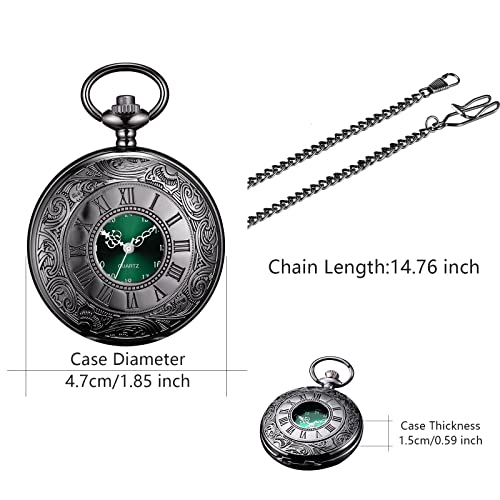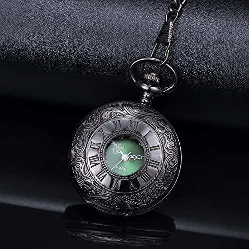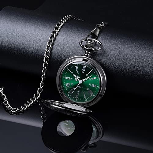 BOSHIYA Vintage Herren Taschenuhr mit Kette Einzigartiges Blau/Grün Römischen Ziffern Zifferblatt Analog Quarz Taschenuhr für Herren Schwarz/Silber