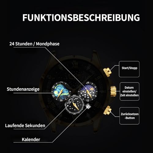 Be the first to review “LIGE Männer Uhr Edelstahl Wasserdicht Analog Mondphase Design Quarz Armbanduhren Für Herren Chronograph Lederarmband Watch for Men Mit Datum Leuchtende Business Casual Retro Herren Uhren”