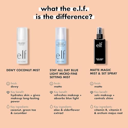 e.l.f. Matte Magic Mist & Set, Leicht, Langanhaltend, Lattierend, Kontrolliert Den Glanz, Erfrischt, Spendet Feuchtigkeit, Hält Den Ganzen Tag Lang, Vegan & Tierversuchsfrei