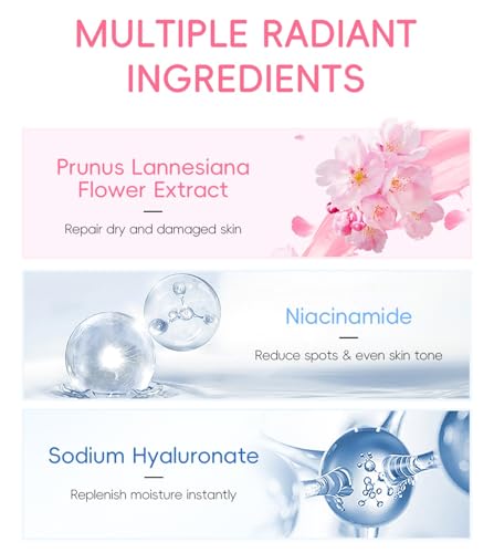 Japanischer Sakura & Nicinamid Toner: der pH-ausgewogene Toner spendet der Haut nach der Reinigung sanft und langanhaltend Feuchtigkeit. Dieser leichte Sakura-Toner enthält Kirschblütenextrakt, Niacinamid, Natriumhyaluronat, um die Haut zu erfrischen und zu glätten, während Feuchtigkeit eingeschlossen wird, für erneuerte, gesund aussehende Haut.