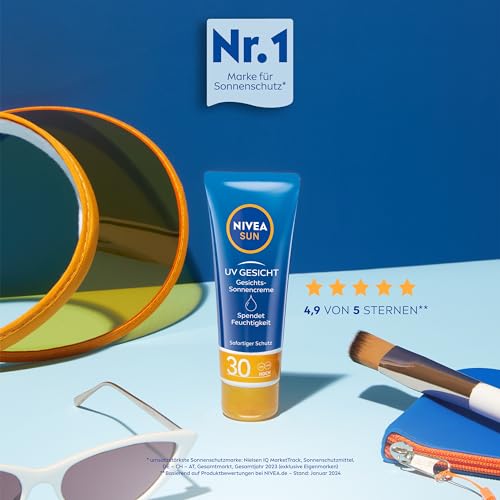 NIVEA SUN UV Gesicht Gesichts-Sonnencreme mit LSF 30, sofortiger Sonnenschutz für Gesicht, Hals & Dekolleté, Sonnencreme mit 24h Feuchtigkeitspflege (50 ml)