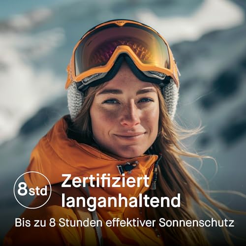 NEUESTE, PATENTIERTE TECHNOLOGIE – Extrem wasser- und schweißresistent, langanhaltend und nicht abspülbar. Bietet 8 Stunden getesteten Sonnenschutz für maximalen Schutz bei Outdoor-Aktivitäten