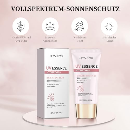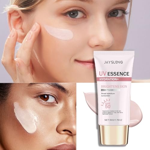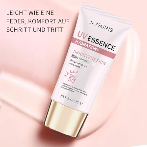 Tinted Sunscreen, Sonnencreme Gesicht SPF 50, Tone up Sunscreen UV-Essenz mit Rosa Effekt, Breitband Sonnenschutz, Feuchtigkeit, Sun Cream Korean einer leichten Textur, 50g