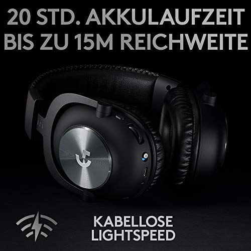Logitech G PRO X LIGHTSPEED Kabelloses Gaming-Headset mit Blue VO!CE Mikrofonfiltertechnologie, PRO G 50mm Lautsprechern, DTS Headphone: X 2.0, 20+ Stunden Akkulaufzeit, PC, PS5, PS4, Switch – Schwarz