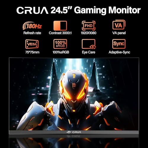 Be the first to review “CRUA 24.5 Zoll Curved Gaming Monitor, 180Hz, Full HD 1080P, 1ms GTG, FreeSync, Rahmenlos, VESA, DisplayPort, HDMI, Augenpflege, Schwarz”