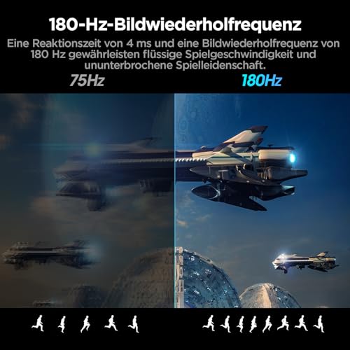 Flüssiges Spielerlebnis: Mit einer Bildwiederholfrequenz von 180Hz und einer extrem schnellen Reaktionszeit von 1ms (GTG) bietet dieser gaming pc monitor Er unterstützt auch Free-sync Technologie für ein noch flüssigeres Gameplay; Spielmodi RCG, FPS und RPG optimale Einstellungen für verschiedene Spielumgebungen und erleichtert das Zielen in Shootern