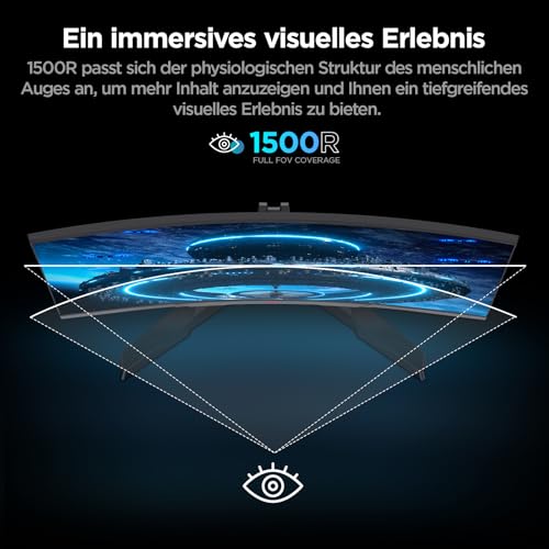 Immersive 1500R Krümmung: Der KOORUI 27 zoll gaming monitor bietet ein beeindruckendes 1500R gekrümmtes Display, das Sie tief in Ihr Spielerlebnis eintauchen lässt; Die sanfte Krümmung sorgt für ein fesselndes und realistisches Seherlebnis