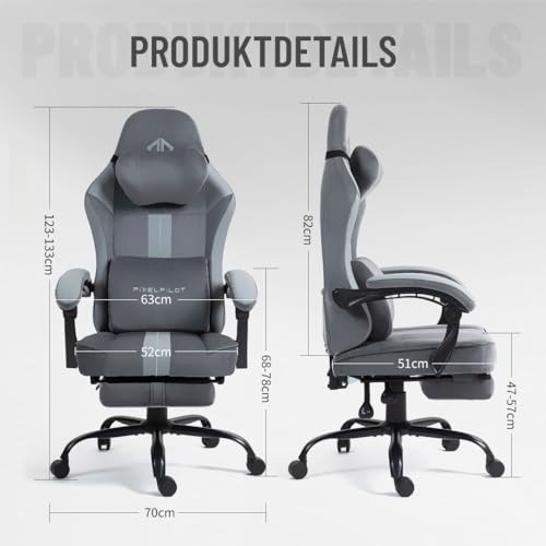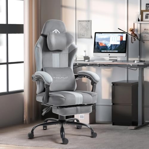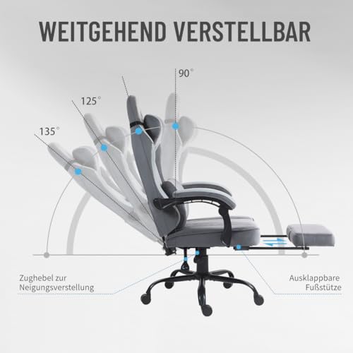 Ergonomischer Gaming Stuhl [Atmungsaktiver Stoff] Gaming Chair mit Fußstütze, Kopf- und Lendenwirbelstütze, Gamer PC Stuhl breite Sitzfläche, Bürostuhl 150 kg Belastbarkeit (Nebula I, Grau)
