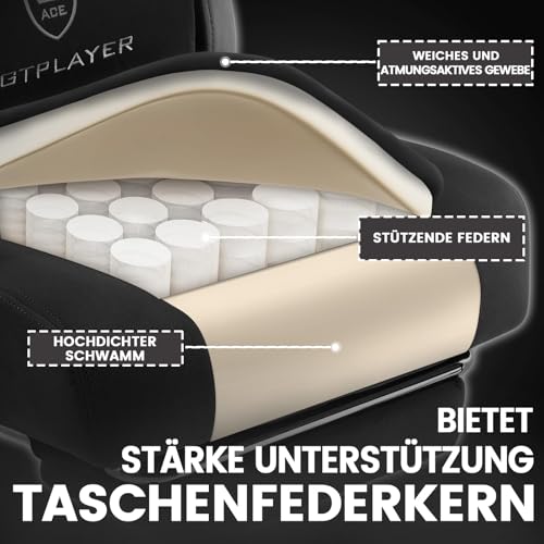 Ergonomische Körperunterstützung: Der Gaming Sessel formt sich perfekt an die natürliche Rückenkontur an, stützt gezielt Kopf, Schultern und unteren Rücken und fördert so eine gesunde Haltung – ideal für stundenlanges Gaming oder Arbeiten.