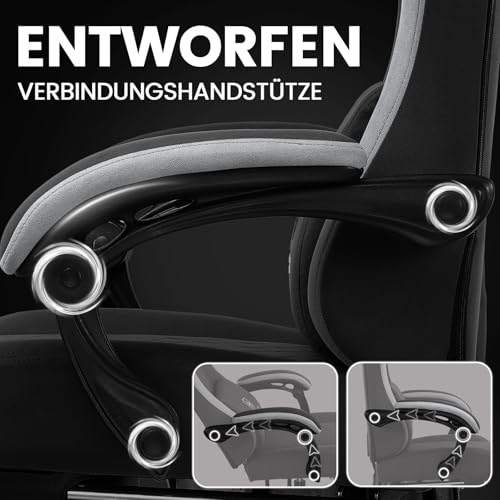 Gaming Stuhl aus Stoff, Computer Bürostuhl mit Fußstütze, Racing Gamer Stuhl 150kg Belastbarkeit, 90-135° Rückenlehne einstellbar Ergonomischer PC Stuhl, 360° drehbar, Schwarz