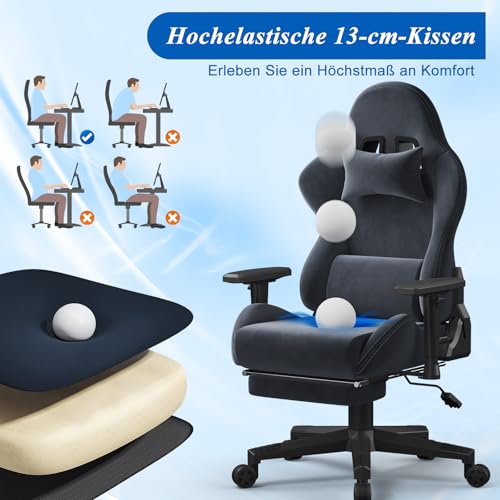 【👨‍🦼‍Großer Gaming Stuhl👨‍🦼‍】Devoko Die Rückenlehne des Gaming Stuhl ist 10 cm höher als die eines herkömmlichen Stuhls, wodurch er auch für die stärksten Menschen sehr bequem ist. Das Kissen ist mit 12cm weicher Polsterung ausgestattet, die Ihnen das Gefühl gibt, auf einer Wolke zu sitzen. Es ist sehr weich und flexibel, so dass Sie sich nach langem Sitzen nicht müde fühlen werden.