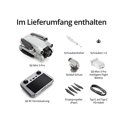 DJI Mini 3 Pro mit DJI Smart Control – Leichte und faltbare Kameradrohne mit 4K/60fps Videos, 48 MP Fotos, 34 Minuten Flugzeit, Hindernisvermeidung in 3 Richtungen