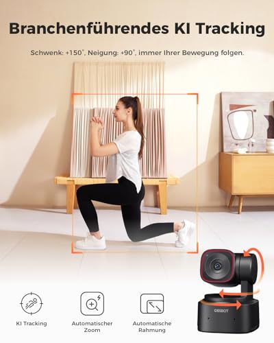 【AI-Tracking & Auto-Zoom】Die AI Webcam unterstützt Ganzkörper-, Oberkörper- und Nahaufnahmemodi. Die PTZ Webcam verfügt über ein 2-Achsen-Gimbal, das sich 300° horizontal und 180° vertikal dreht, um perfekte Bildkompositionen zu gewährleisten.