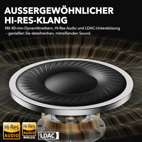 [HOCHAUFLÖSENDES AUDIO MIT LDAC] Mit den 40-mm-dynamischen Lautsprechern bieten die Y8 hochauflösendes Audio dank der LDAC-Technologie, die tiefen Bass und kristallklare Hochtöne gewährleistet. Genießen Sie reichhaltigen und detaillierten Sound, ob zu Hause oder unterwegs.