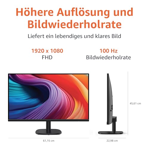 Amazon Basics Monitor 27 Zoll (68.6 cm), FHD 1080p, max. 100 Hz, VESA-kompatibel, integrierte Lautsprecher, Schwarz