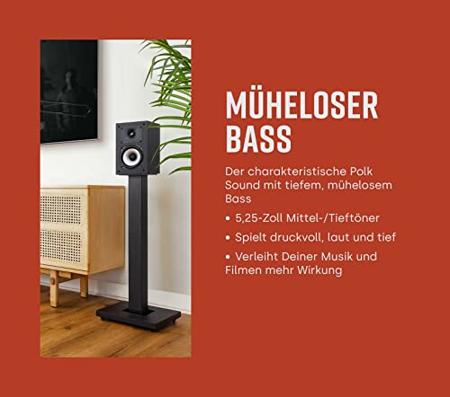 Polk Audio Monitor XT15 kompakter Regallautsprecher, Stereolautsprecher, Surround Lautsprecher, Hi-Res Zertifiziert, Dolby Atmos und DTS:X kompatibel, HiFi und Heimkino Lautsprecher (Paar)