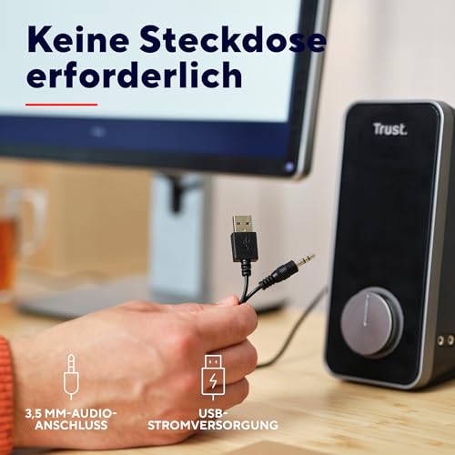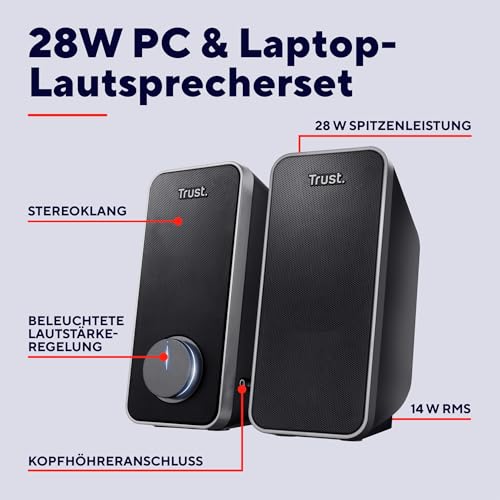 Trust Arys 2.0 PC Lautsprecher Set, 28 Watt, 3,5 mm AUX Klinke, Boxen mit USB-Stromversorgung, Lautsprecher für PC, Laptop, Computer, Tablet und Smartphone – Schwarz, Einheitsgröße