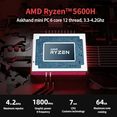 【Neuer AskHand Mini PC 5600H】 Präsentation eines Mini-PC mit AMD Ryzen 5 5600H 6 Kerne/12 Threads (bis zu 4,3 GHz) und Radeon 7 Core 1800 MHz Grafik. Verwandeln Sie Ihren Desktop in eine leistungsstarke Workstation, indem Sie einfach eine Tastatur und eine Maus hinzufügen. WiFi 6 (802.11ax) und Bluetooth 5.2 ermöglichen eine schnellere und stabilere Datenübertragung und keine Netzwerküberlastung und ermöglichen eine höhere drahtlose Unterstützung. Verabschieden Sie sich von überladenen Desktops.