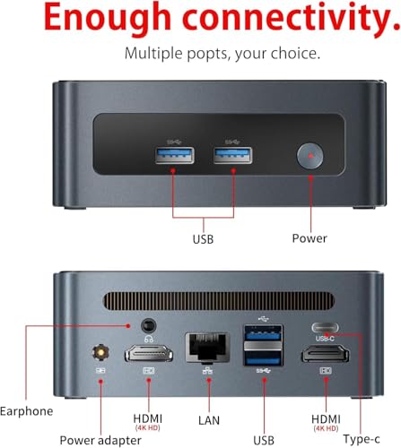 【Multi-Interface-Design Mini PC 5600H】Die Größe des Mini-PC ist ein mobiler Assistent in kompakter Größe, ideal für Arbeit und Studium. Ausgestattet mit funktionsreichen Schnittstellen, WiFi 6 /BT-5.2 /USB*4 /USB-C /2*HDMI usw. und kann gleichzeitig den Ausgang auf 4K bei 60 Hz 3 Bildschirmen unterstützen, ideal für zu Hause/Büro/Spiele. Dies ist ein kleiner Desktop-PC. Im Lieferumfang enthalten: Mini-PC*1, Netzadapter*1, HDMI-Datenübertragungskabel*1, VESA-Halterung*1, Produkthandbuch*1.
