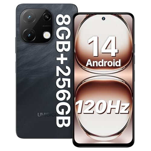 UMIDIGI Handy Android 14, 8(4+4)+256GB/1TB TF Smartphone Ohne Vertrag, 120Hz 6.8 Zoll HD+ Smartphone, Bluetooth 5.2, 5000mAh, Octa Core, 4G Dual SIM/Face ID/Fingerprint/13MP/GPS/OTG-Note 100A Schwarz