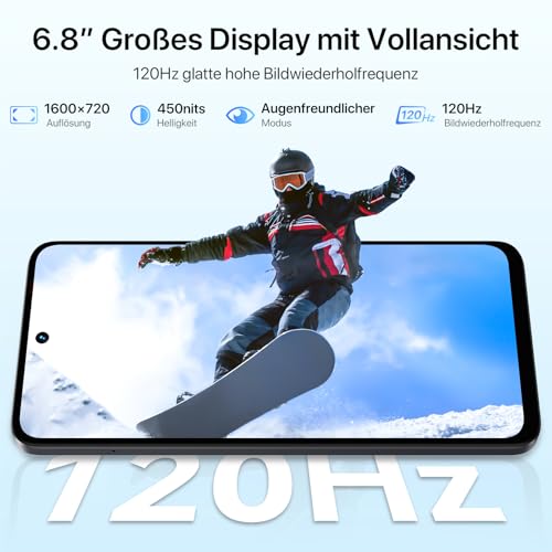 120Hz 6,8 Zoll Dispaly + 13MP Kamera: UMIDIGI Note 100A smartphone ohne vertrag verfügt über eine ultra-große 6,8″HD + Display und eine hohe Bildwiederholfrequenz von 120Hz, die eine reibungslose Erfahrung bietet und gibt Ihnen eine atemberaubende visuelle Erfahrung. Die 13MP Superklarheit eignet sich für verschiedene Aufnahmeszenarien und fängt viele Details ein.