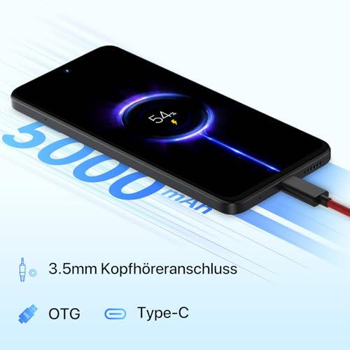 5000mAh Akku: Dieses handy ohne vertrag verfügt über einen integrierten 5000mAh Akku und eine 10W Schnellladefunktion. Es unterstützt auch 20W Schnellladefunktion für schnelleres Aufladen, sodass Sie lange im Internet surfen, Videos ansehen und Musik hören können.